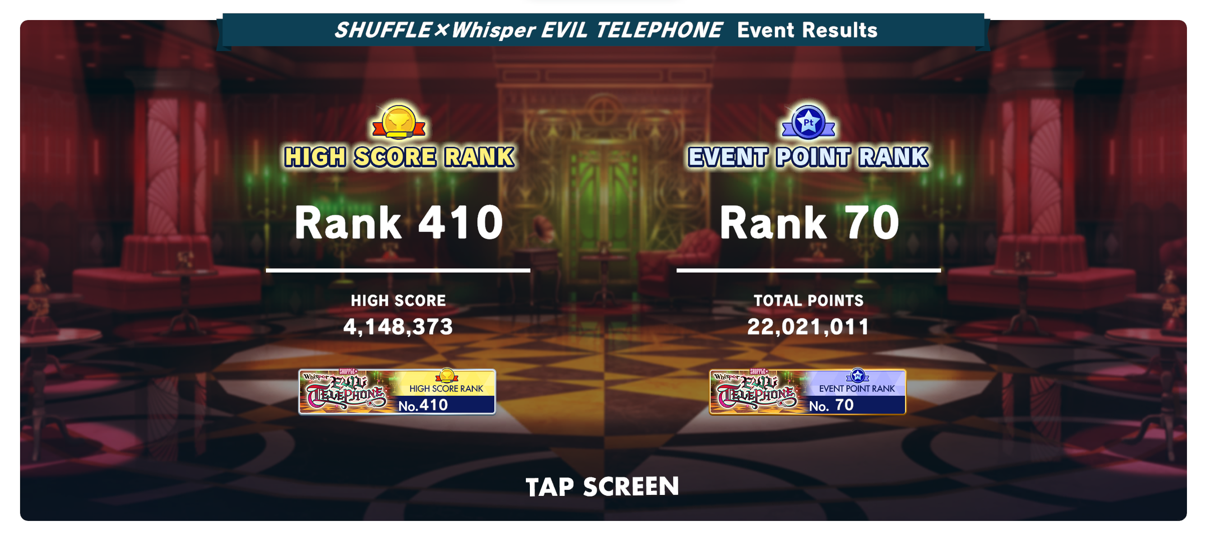 once again failed to get T69 in an event...I was off by 1, just like Spring Night ;w;